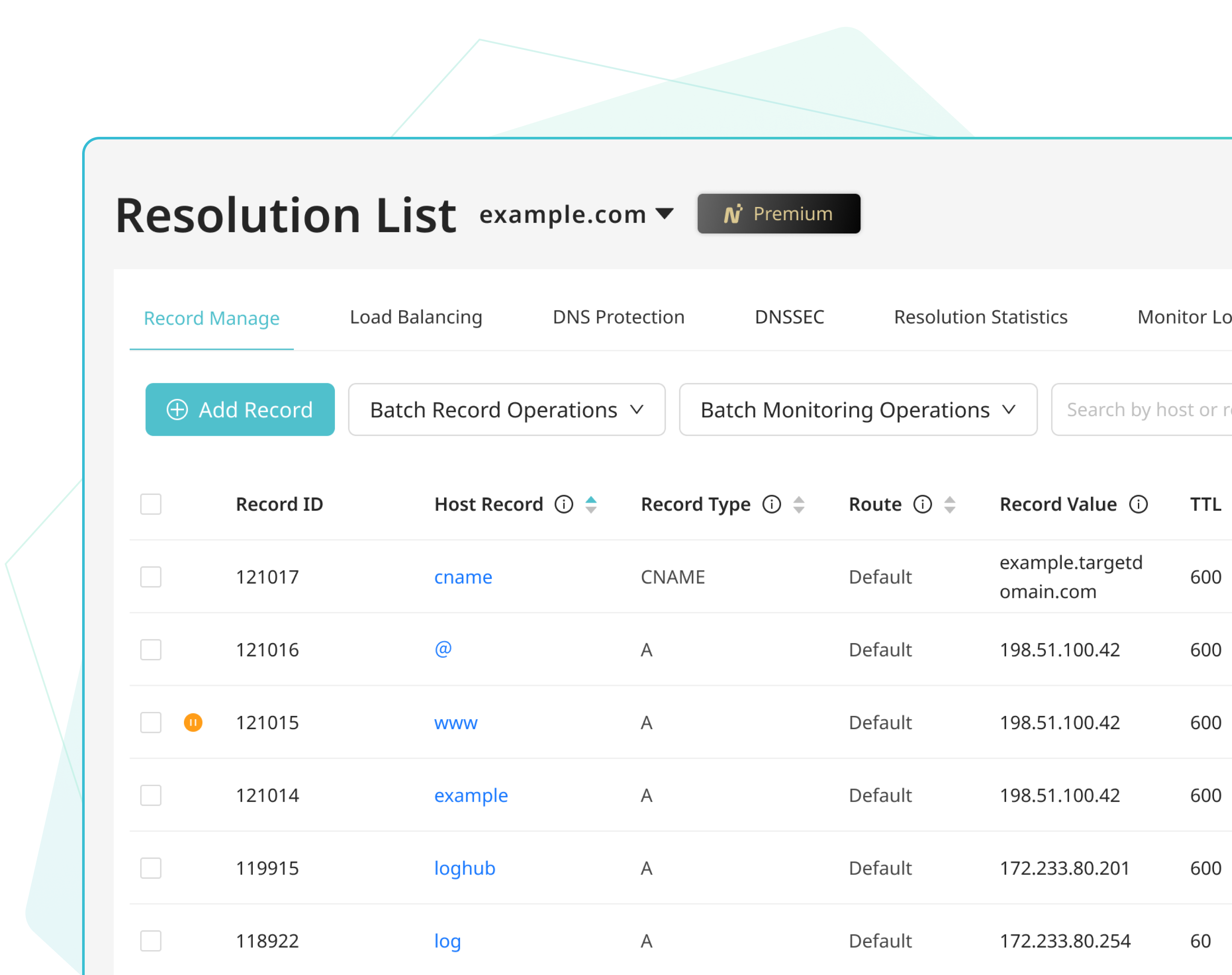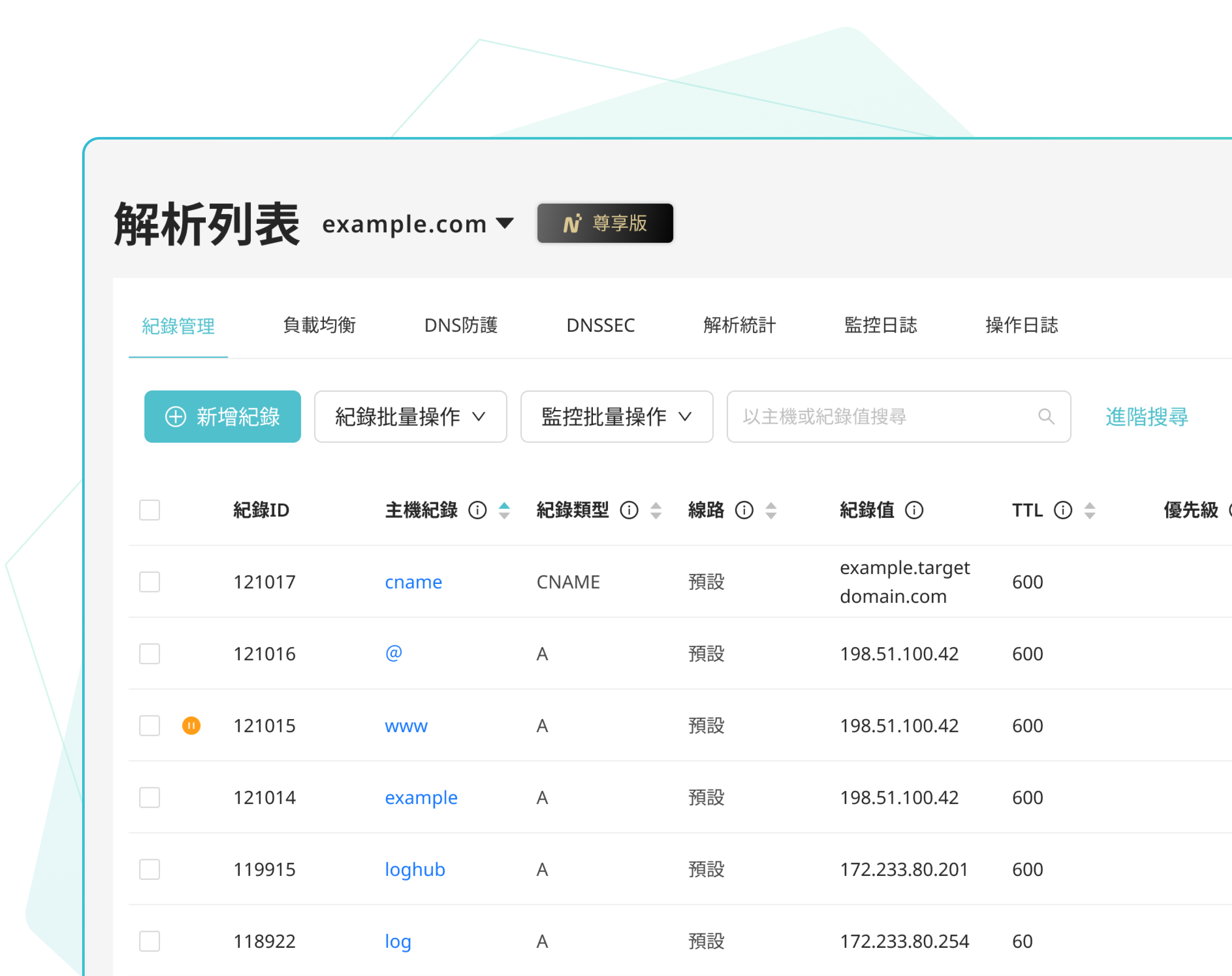 SkyGTM 提供高效能的域名解析,支援智慧流量調度與實時監控秒級容災能力,確保網站永遠指向最快且穩定的伺服器。適合跨國企業、遊戲服務、SaaS 平台,讓連線更快更穩定。